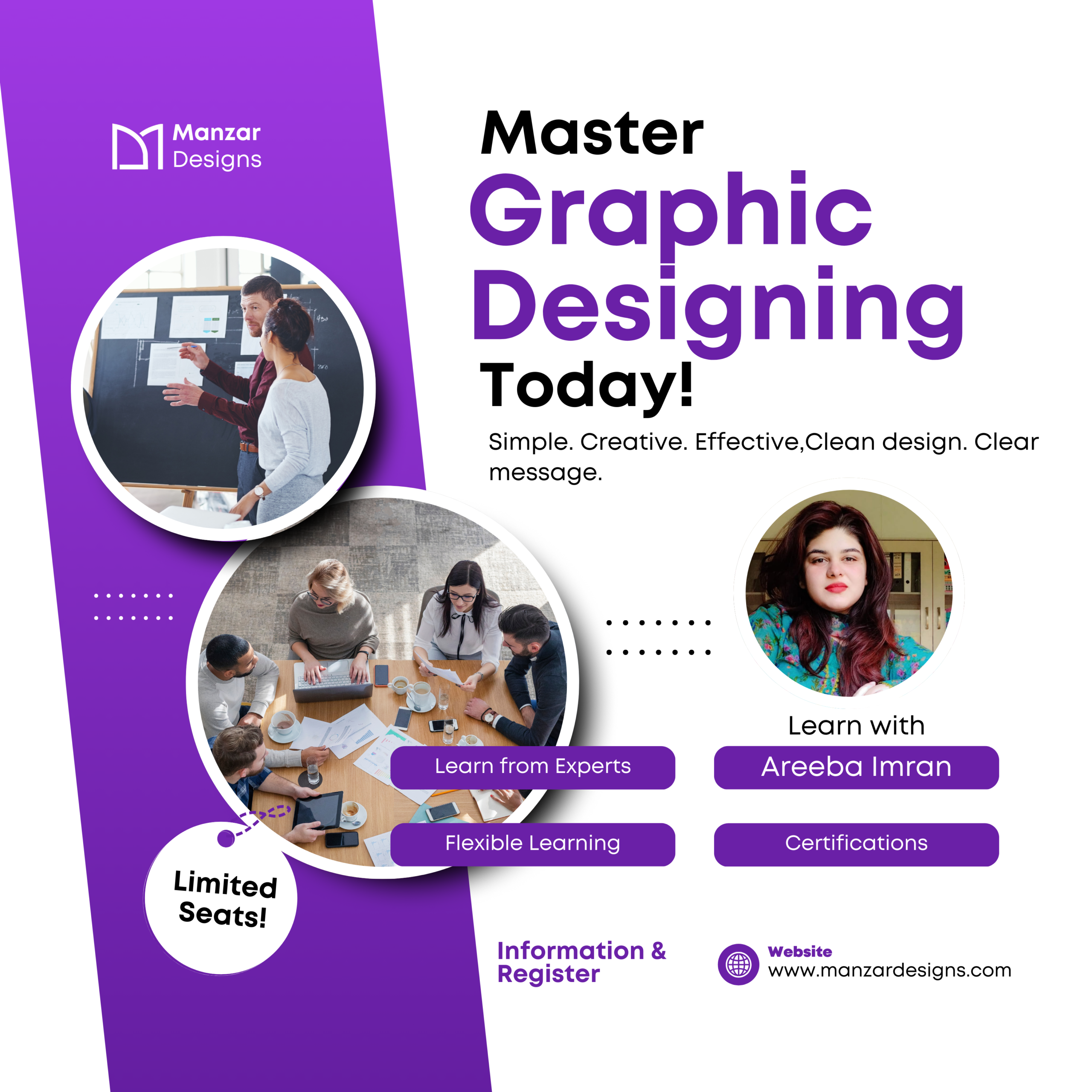 Enhance your career with Manzar Designs’ professional training programs in Graphic Designing Social media marketing, video editing, and more. Learn from industry experts through practical training in key digital marketing areas.